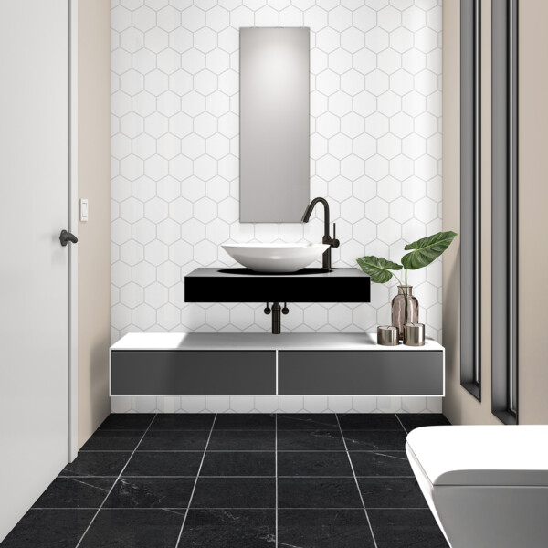 By mixing materials, finishes, patterns, and decorative accents, you can create a bathroom space that reflects your personality and supports your lifestyle. Whether you want to make a bold statement or prefer subtle sophistication, black and white tiles provide the ideal foundation for bathroom design that stands the test of time. For an elevated and timeless bathroom design, pair your black and white tiles with the warmth and texture of natural stone, creating a luxurious atmosphere that reflects both elegance and enduring quality.