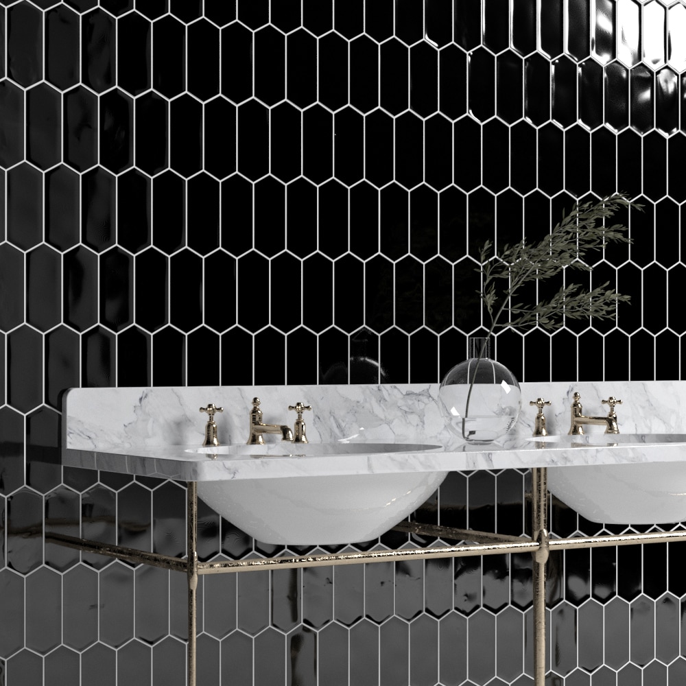 Black Glossy Picket Ceramic Tile