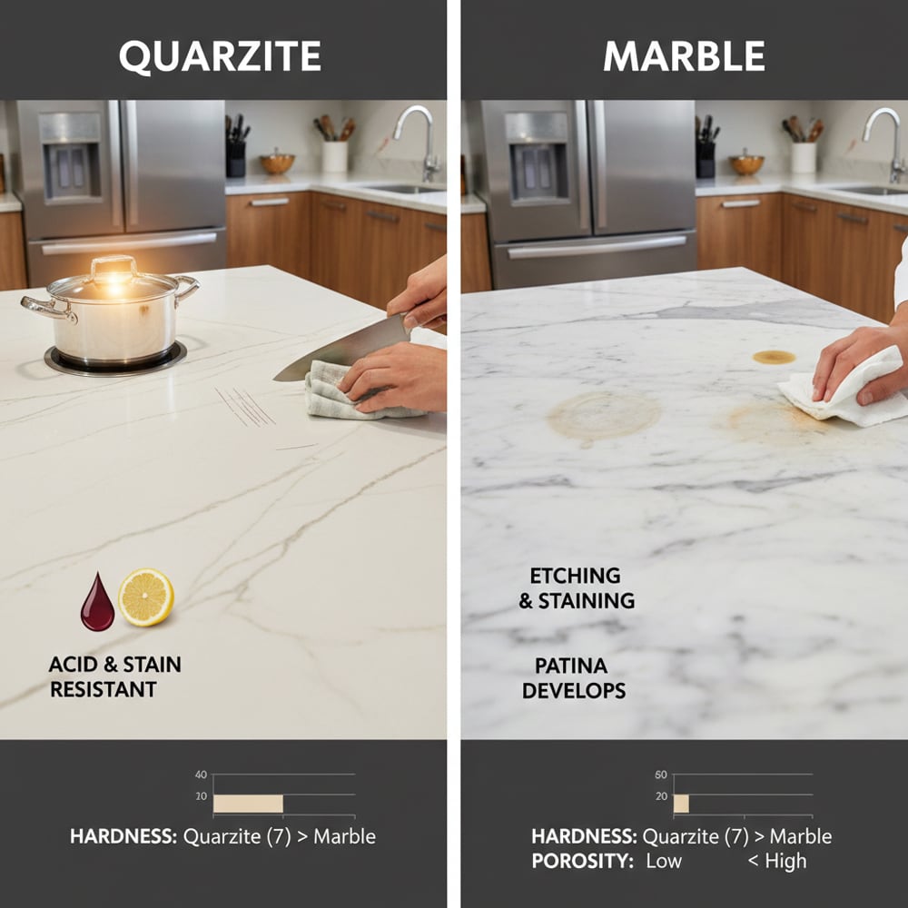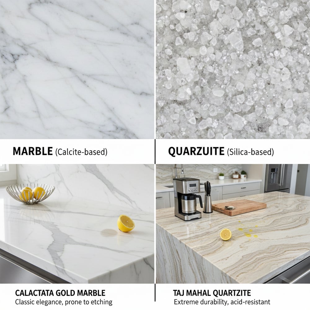 2. Quartzite vs marble: Which offers better durability for busy kitchens?