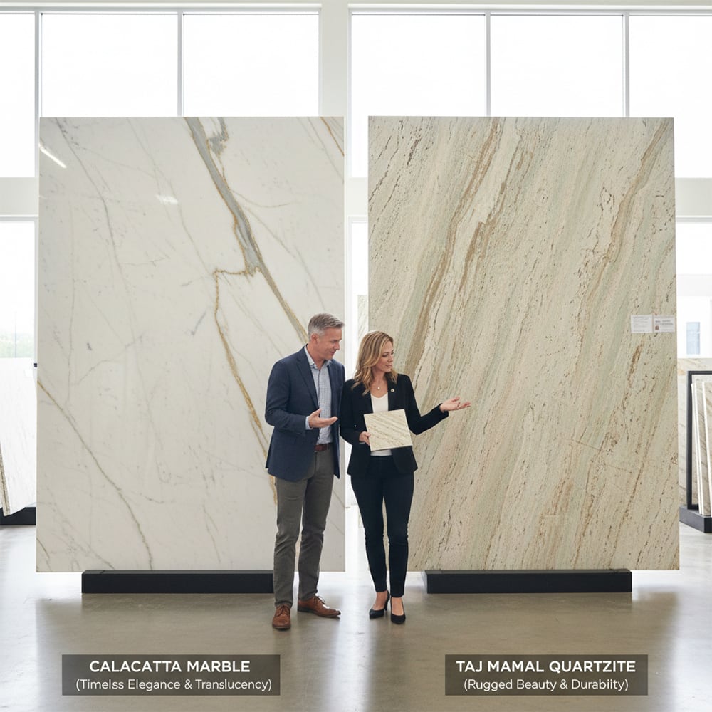 4. How does quartzite vs marble aesthetics compare in a showroom?