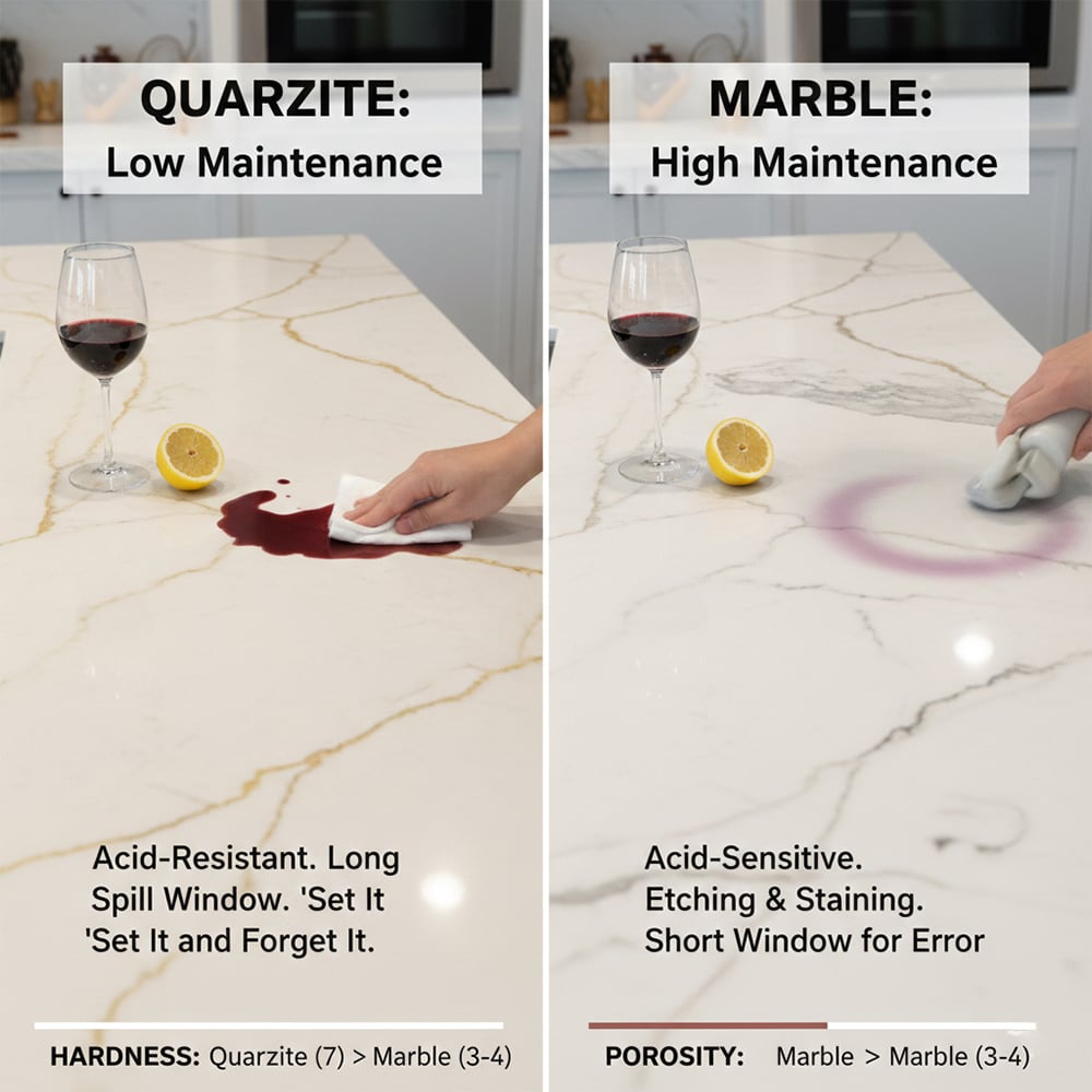 5. Is marble vs quartzite maintenance a dealbreaker for most homeowners?